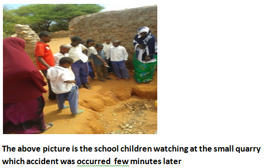On Monday 26 May 2014 at 10 am local time accident of land mine fuse occurred in balanbale Town . Three children were playing small quarry near balanbale women office group, then they found a fuse/starter of TM 57 land -mine they started knocking and the item exploded. Two children inside the hole, two of them slight injured while other one was seriously wounded on his head and died.